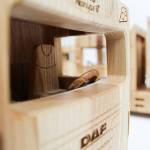 We offer you our wooden trucks, which are created by Promi Design designers and made in our workshop. We used strong and durable wood to make them. Every detail, from the semi-trailer to the truck steering wheel, has been made and joined by hand, ensuring strength, durability, high quality, and a great product look. We promise that you will not have to worry about that the gift could be broken. We also left space inside the semi-trailer so you could put something extra if you wanted.