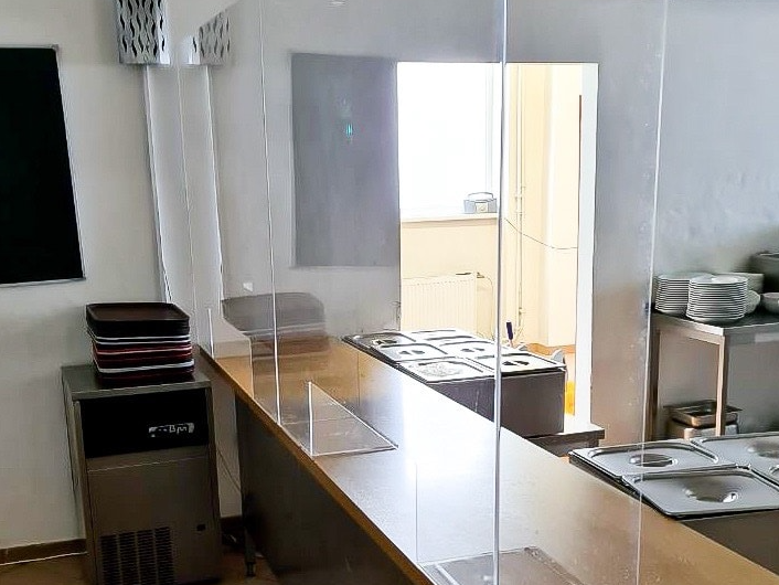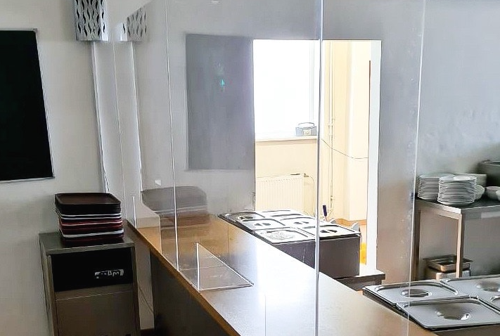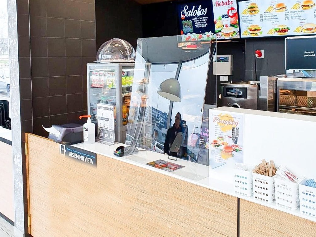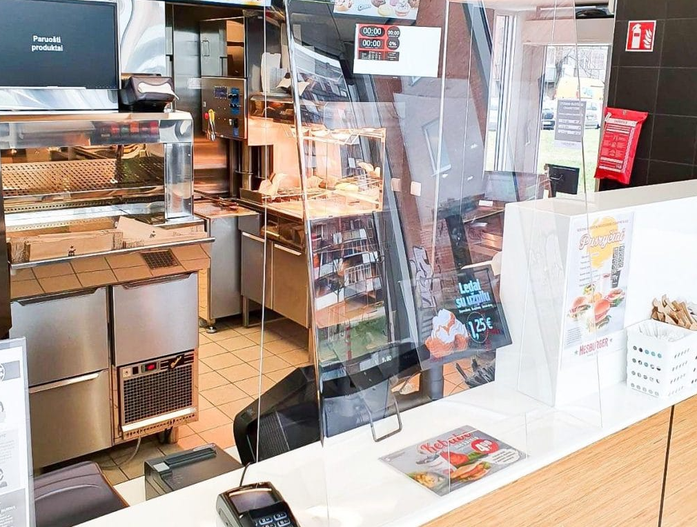 We produce partitions, walls, and protective fences of various sizes and non-standard sizes, which are especially transparent and invisible. Protective plexiglass (acrylic) walls for outlets. These partitions are relevant to stores, offices, and supermarkets that serve customers and want to reduce the risk of direct contact during and after a coronavirus pandemic. Plexiglas walls are made of 2mm, 3mm and 6mm thick. Protective walls/partitions are made of plexiglass, acrylic, plexiglass, polycarbonate. We deliver to all Lithuanian cities and in the other countries worldwide too. Protective fences are milled or laser cut from a solid acrylic plate. Partitions are particularly rigid due to thermally applied bending technology. Adhesives are not used in the production of partitions, which makes them even more resistant. Easily placed on any work or trade table. The protective wall is attached with a special 3M high-quality double-sided tape, so this partition/wall will be easily attached to any smooth surface.