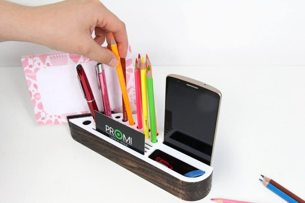 Norite, kad ant jūsų stalo viskas būtų savo vietose, tačiau neturite, kur sudėti visas priemones arba jos užima per daug vietos? Siūlome įsigyti išskirtinio dizaino medinį pieštukinių komplektą. Į šias pieštukines galėsite įsidėti ne tik pieštukus, rašiklius bei daugumą kanceliarijos priemonių, bet net ir mobilujį telefoną, kurį visada matysite ir reikalui esant galėsite greitai ir patogiai pasiimti. Daugiau jokios betvarkės ant stalo!