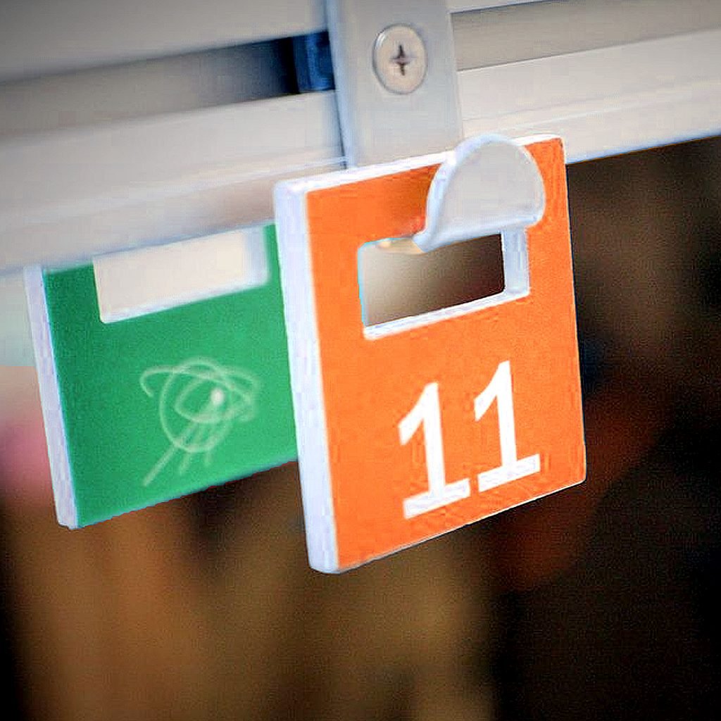 Profesionaliai pagaminti plastikiniai rūbinės žymekliai visada atrodys geriau nei popieriniai lapeliai su numeriais. Numerėliai taip pat yra patvaresni ir ilgaamžiškesni bei mažiau pametami ar susidėvintys.