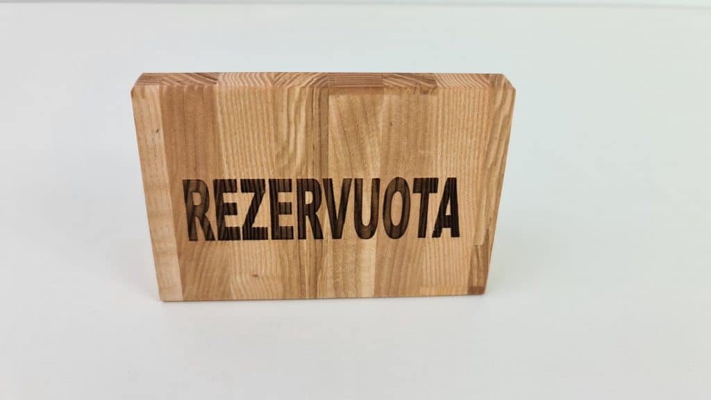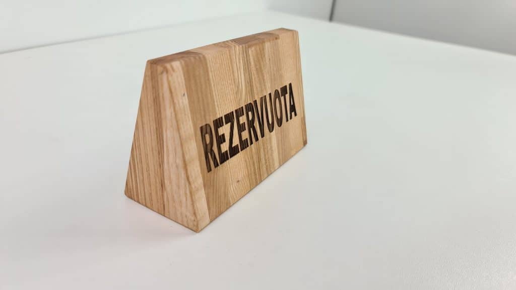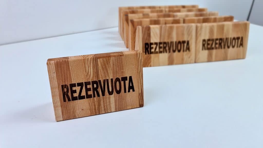 We also produce wooden signs for a table with a laser-engraved inscription “reserved”. The mark is made of high-quality wood, is strong, durable, and does not wear out. The sign can be perfectly used for its intended purpose in a cafe, restaurant, or pub. Also, we can change the inscription on the sign and engrave the words of your choice, such as “working” and “not working”, we can engrave your desired logo or name, perfect on both the shelf and in the office on the meeting table.