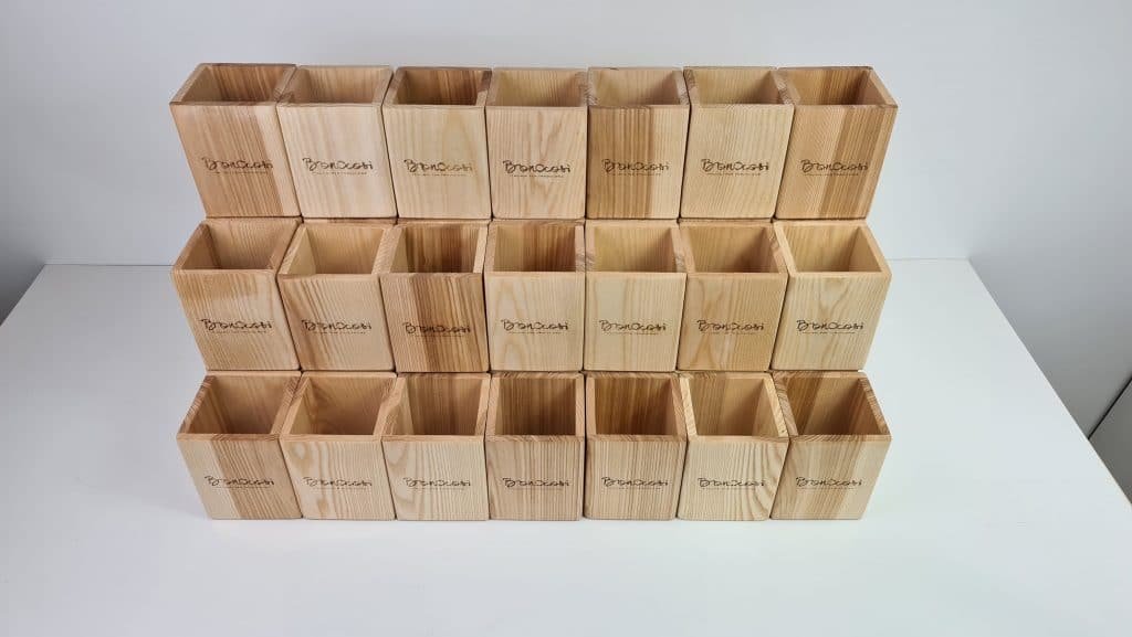 The boxes are made of solid, high-quality wood, are sturdy and durable, and quality is paramount in production. We can engrave a note, picture, drawing, or logo of your choice on the box.